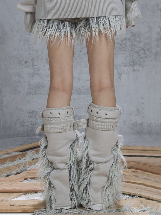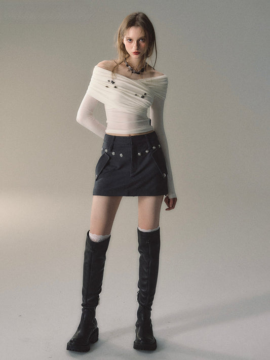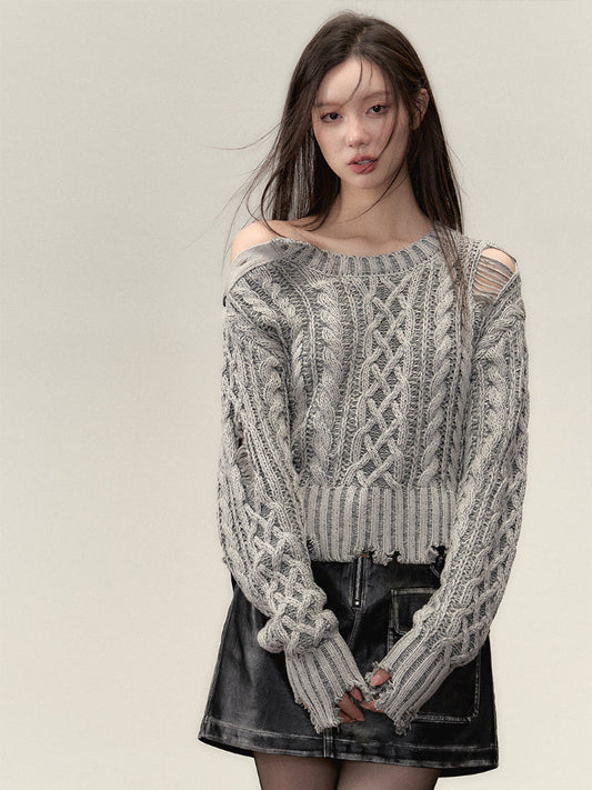 그레이 & 화이트 오프 숄더 니트 울 스웨터