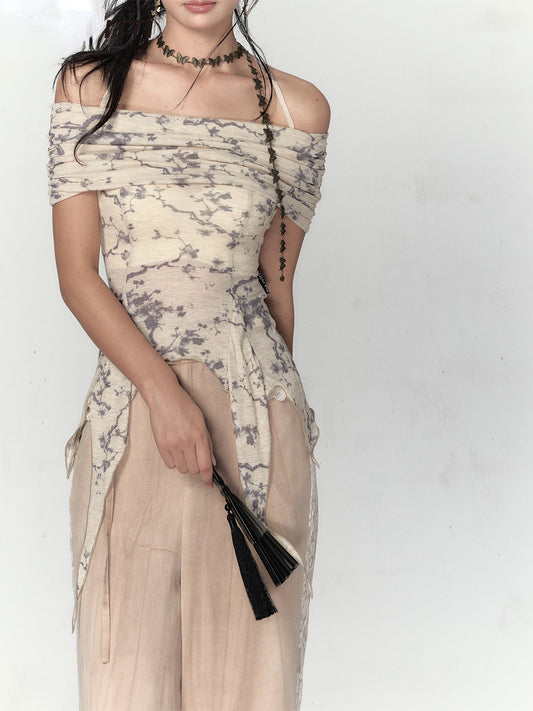 그린 레이스 불규칙 밑단 스플릿 슬링 드레스
