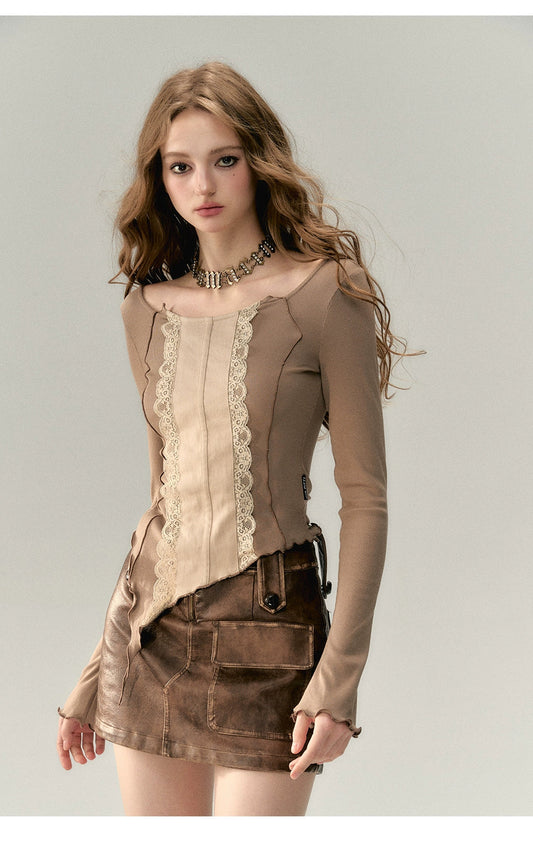 그레이-그린 & 카키 레이스 패치워크 니트 스웨터