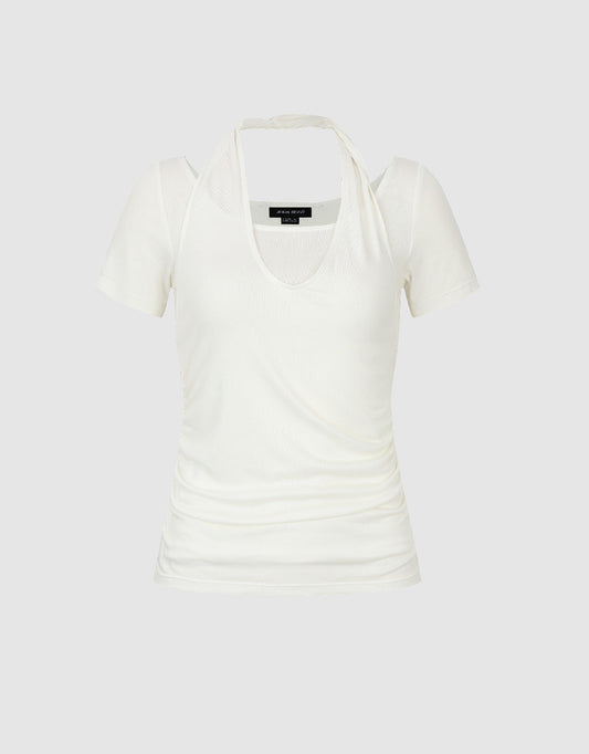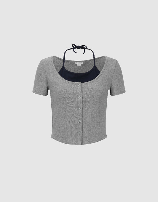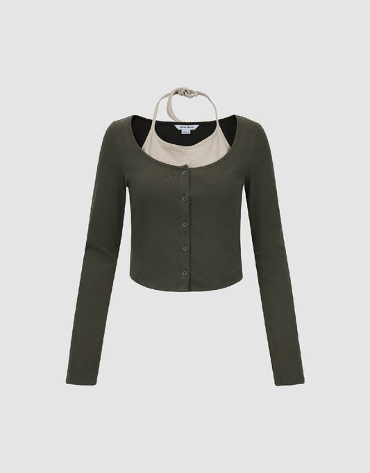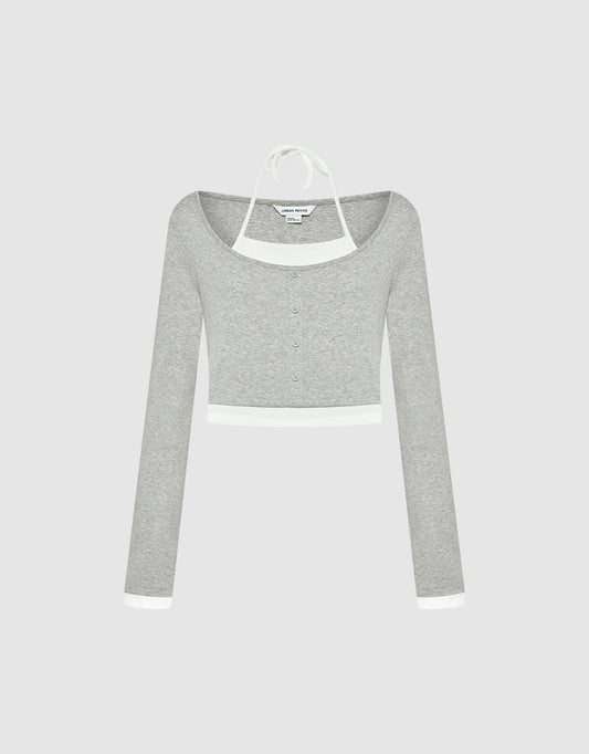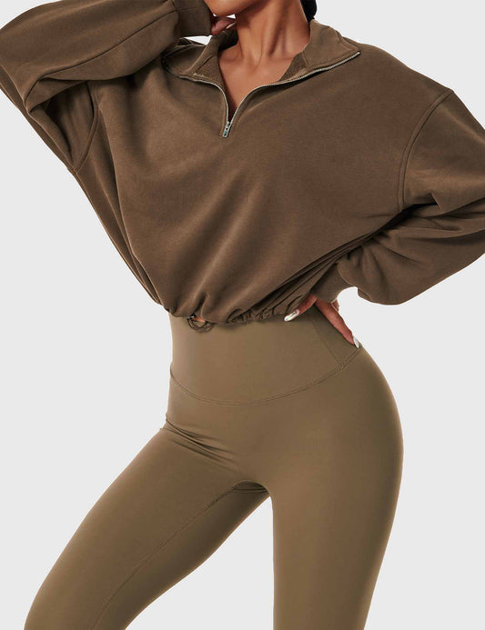 하프 지퍼 하이넥 크롭 스웨트셔츠