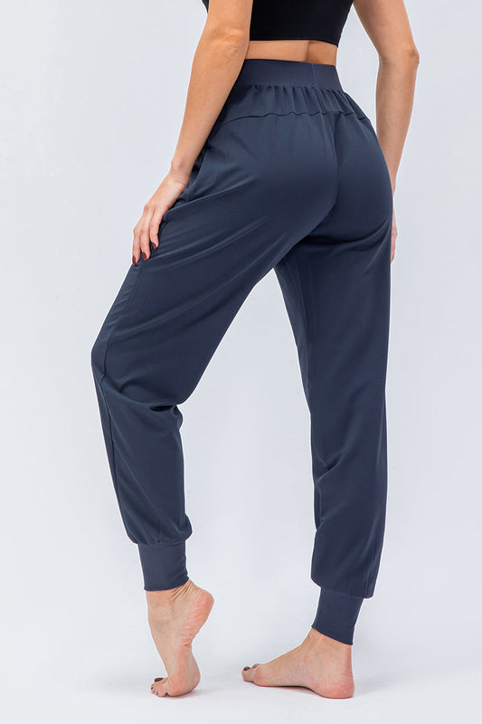 드로스트링 디테일 하이웨이스트 테이퍼드 조거 팬츠