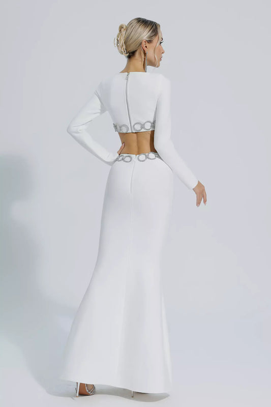 Janelle 화이트 컷아웃 긴 소매 붕대 드레스