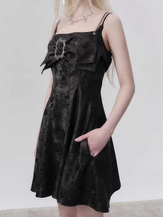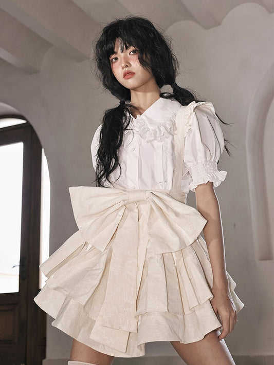 자카드 스트랩 빅 보우 하이웨이스트 스커트