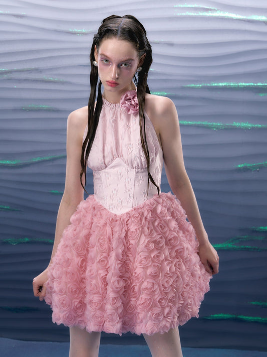 자카드 입체 꽃 밑단 브로치 우아한 드레스