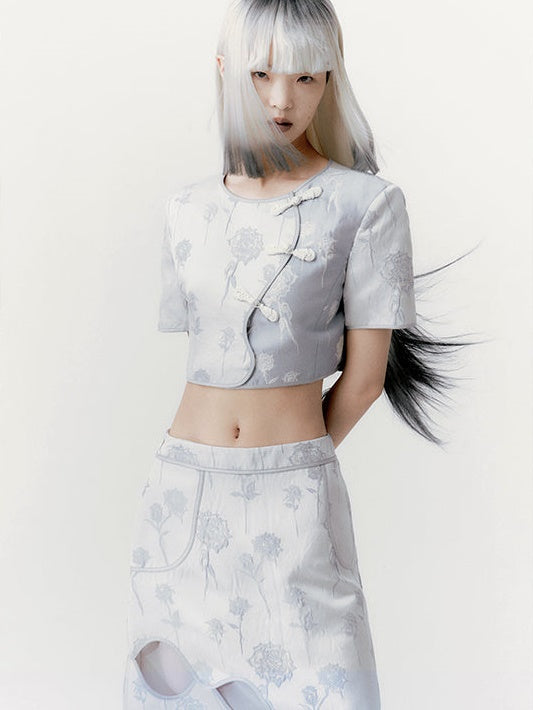 자카드 스플라이싱 쇼트 코트 & 스커트
