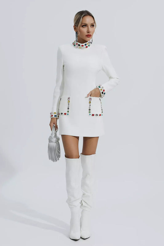 Karina 화이트 다이아몬드 장식 미니 드레스