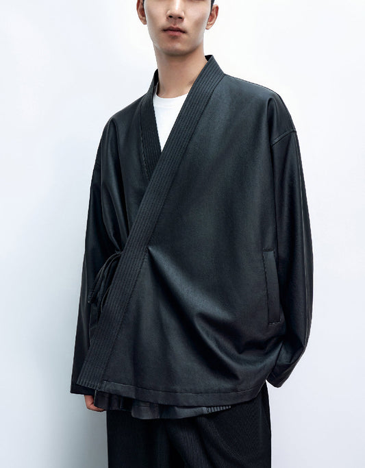 Kimono Lapel Vegan Leather Jacket