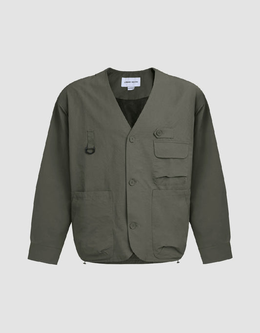 Khaki & Gray Studded Loose-fitting Jacket