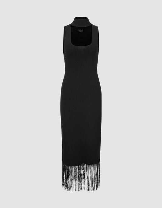 Keyhole Neck Sleeveless Knitted Dress