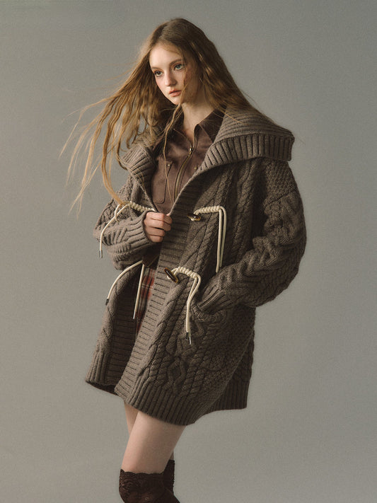 Khaki & Black Horn Button Knit Cardigan