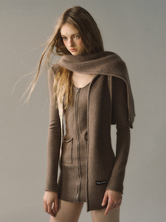 카키 칼라 니트 미니 드레스
