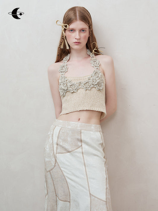 니트 플라워 모티브 숏 레트로 스위트 캐미솔