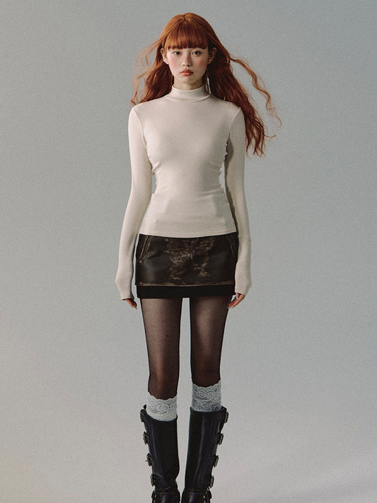 니트 보틀넥 얇은 심플 플레인 심플 컷소우