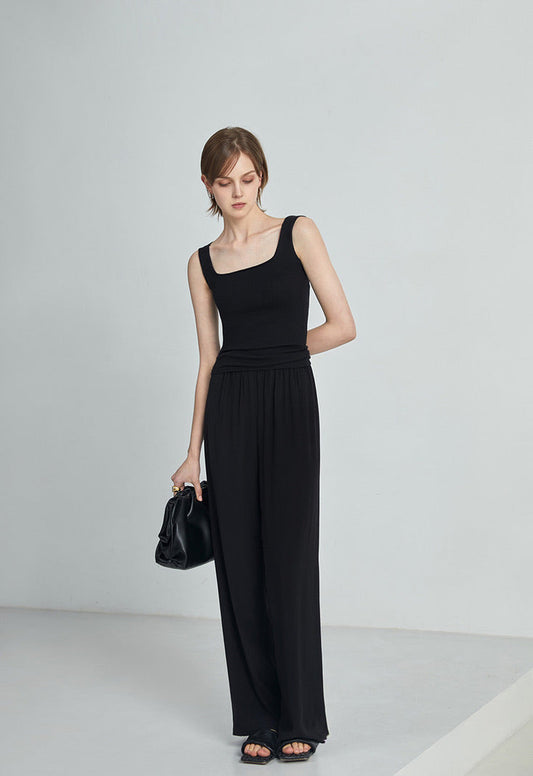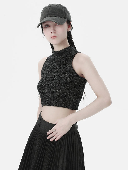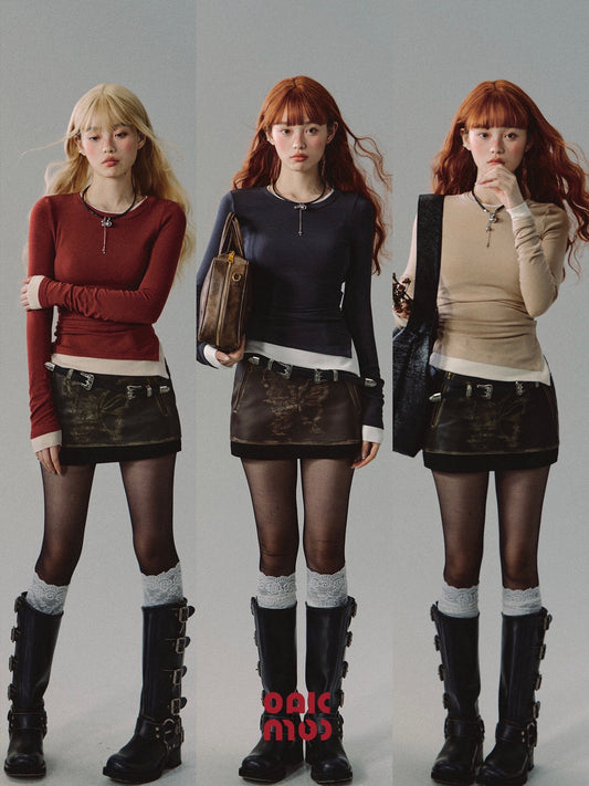 니트 페이크 레이어드 비대칭 플레인 심플 컷소우