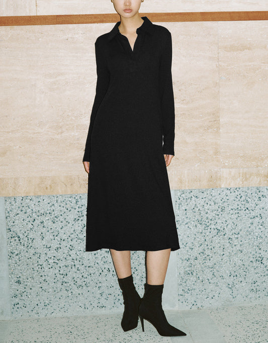 니트 페이크 레이어드 타이트 비대칭 숏 원피스