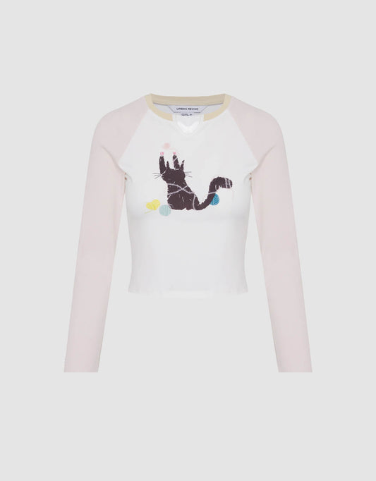 Kitty Printed Raglan Sleeve Skinny T-Shirt