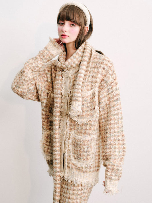 스톨&롱 스커트 니트 프린지 가디건 재킷