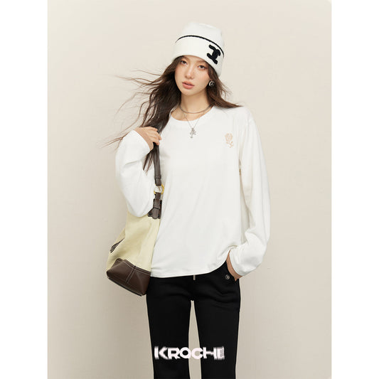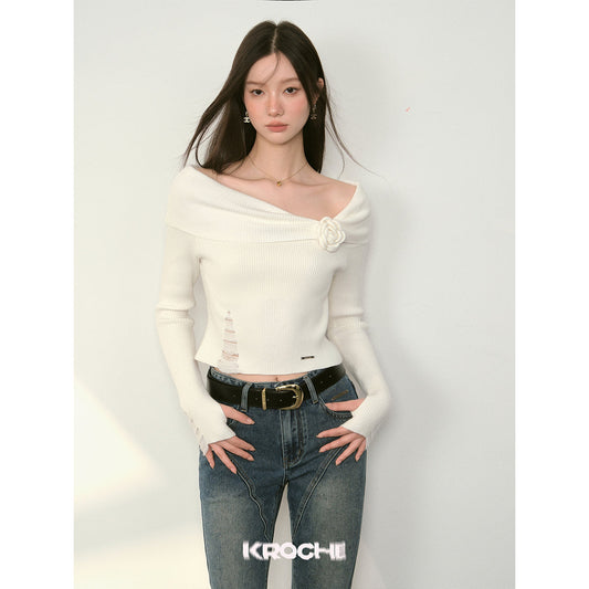 Kroche 3D Rose Off-Shoulder Knitted Top White