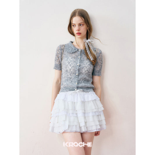 Kroche Classic Silk Wool Round-Neck Cardigan White