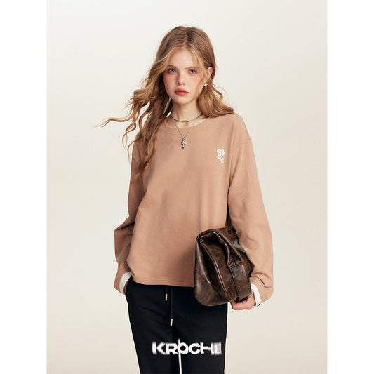 Kroche Color Blocked Rose Embroidery Top Khaki