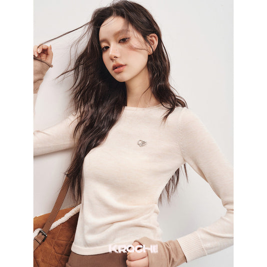 Kroche Color Blocked Cuff Woollen Knit Top Beige