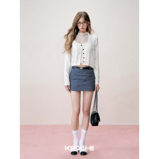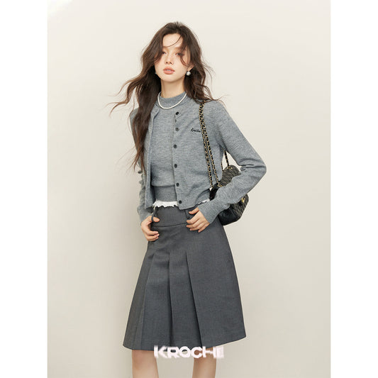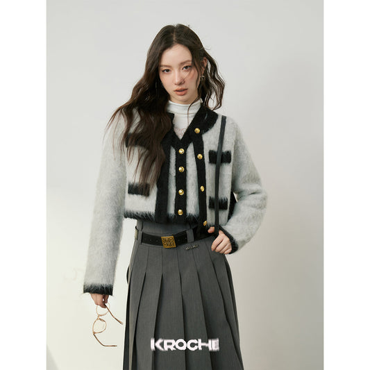 Kroche Color Blocked Alpaca Fiber Cardigan Grey