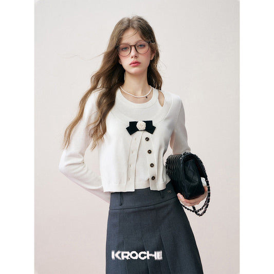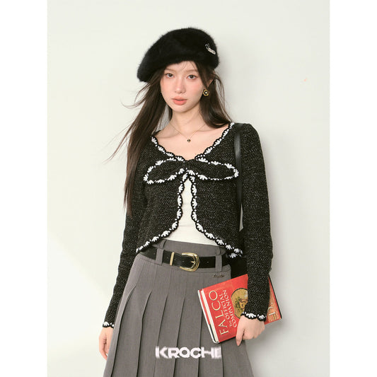 Kroche Color Blocked Bow Tie Knitted Cardigan Black