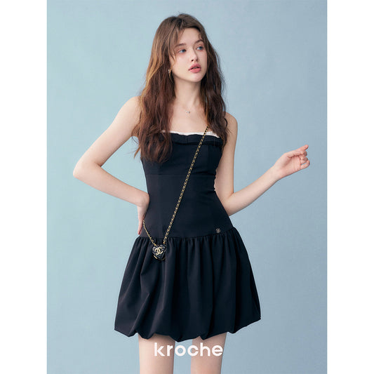 Kroche Color Blocked Bow Patchwork Bud Dress Black