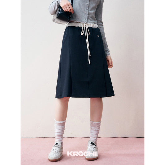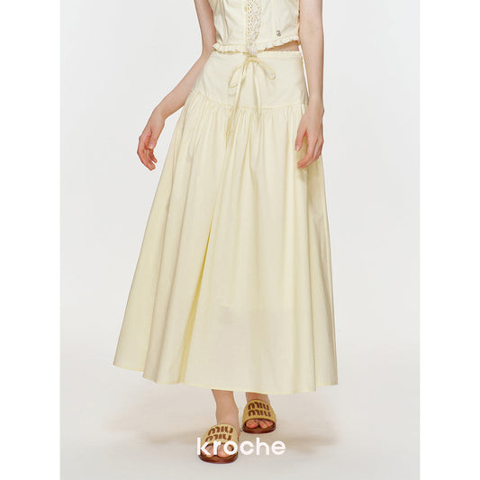 Kroche Bow Wrinkle Lace Edge Long Skirt Yellow