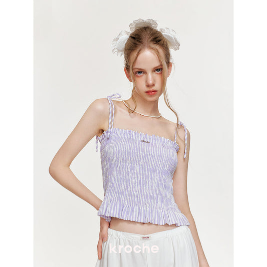 Kroche Bow Lace Up Plaid Sling Vest Purple