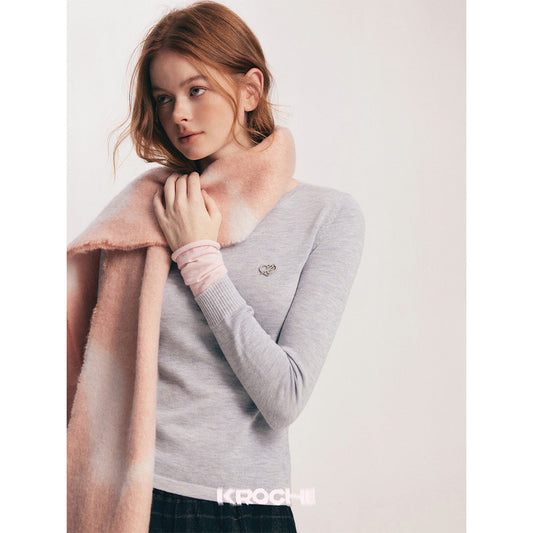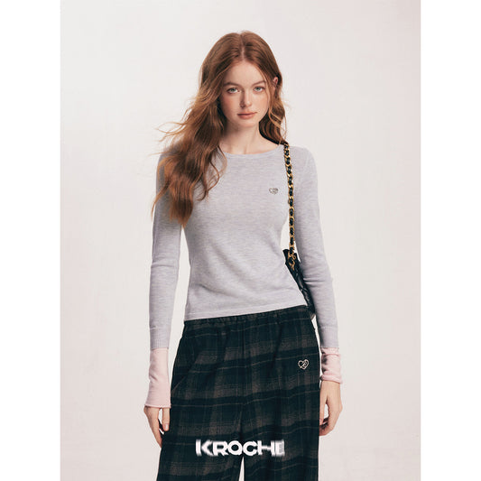 Kroche Color Blocked Cuff Woolen Knit Top Grey