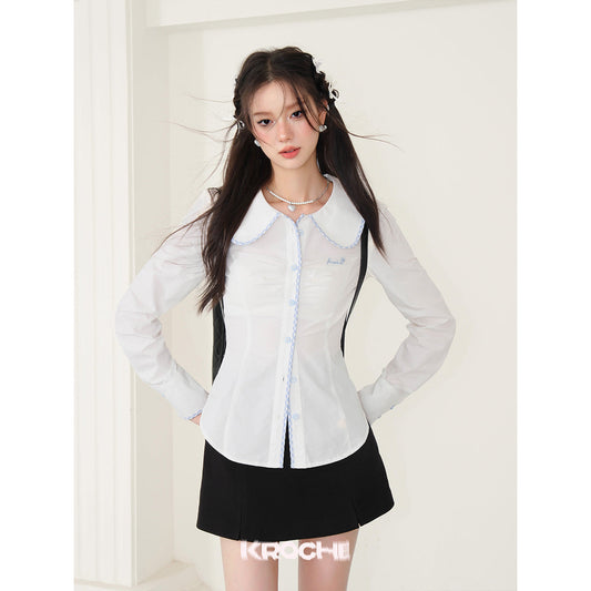 Kroche Color Blocked Doll Collar Slim Shirt White