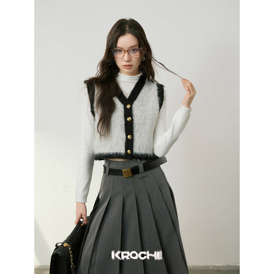 Kroche Color Blocked Alpaca Fiber Vest Grey