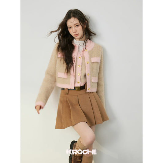 Kroche Color Blocked Alpaca Fiber Cardigan Pink