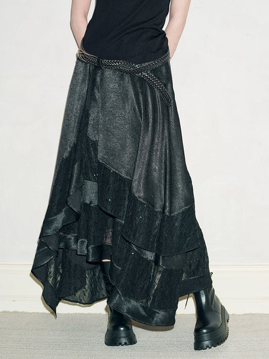레이스 비대칭 시퀸 플레어 A라인 링 스커트