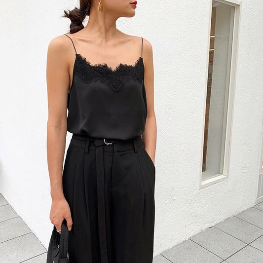 Kroche Wrinkle Fish-bone Lace Edge Sling Vest