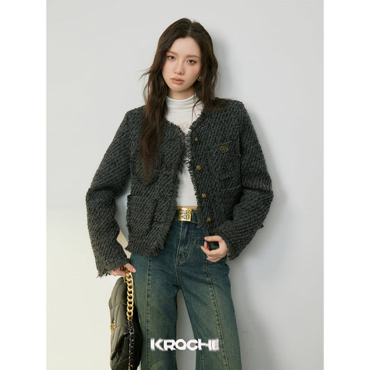 Kroche Vintage Tweed Liner Down Jacket Dark Grey