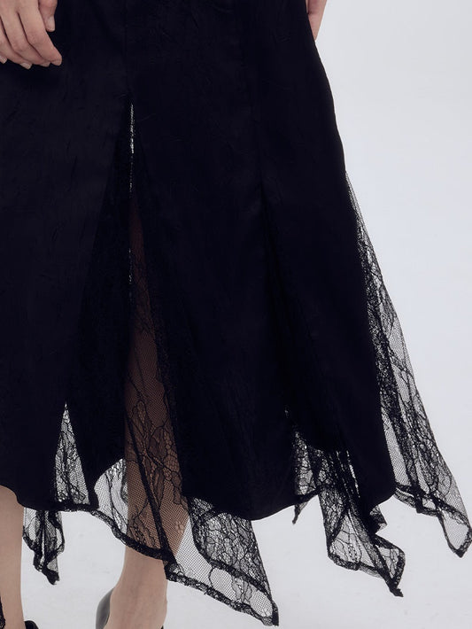 레이스 비대칭 엘레강트 플라워 롱스커트