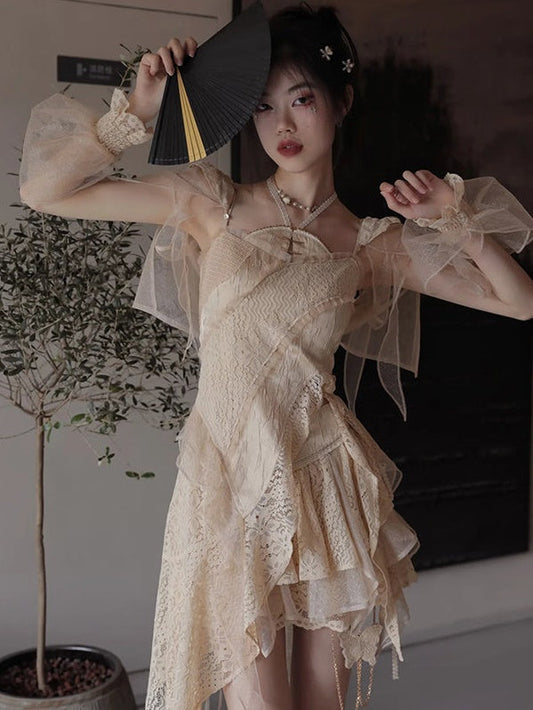 레이스 발레 서스펜더 드레스 & 슬리브 탑