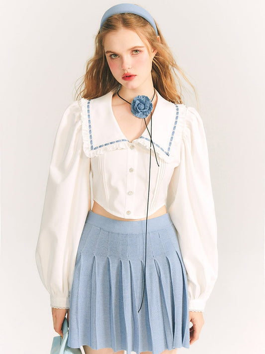 레이스 인형 칼라 쇼트 벌룬슬리브 셔츠