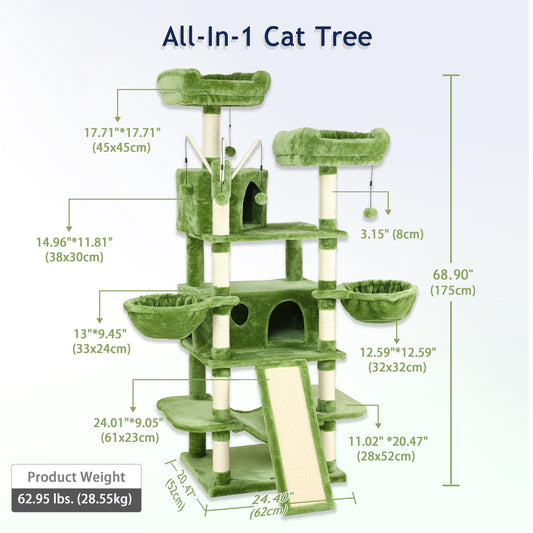 KZLAA 대형 고양이 나무 69" 베이지색 키 큰 고양이 타워 다단계 대형 고양이 등반 스탠드