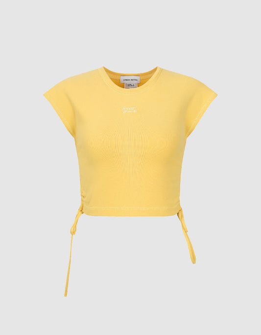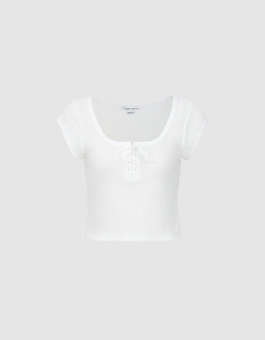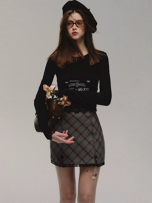 레이스 스티치 레터 프린트 긴소매 티셔츠