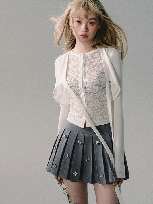 레이스 스티치 컬리지 테이스트 재킷 & 퍼피 스커트