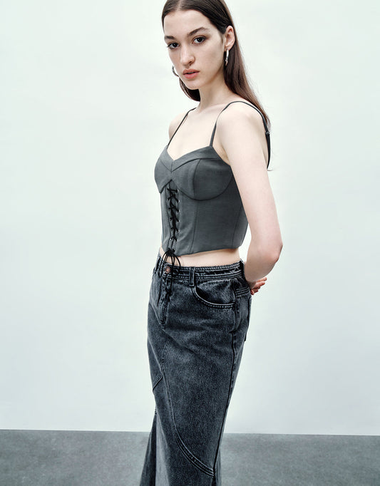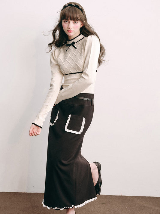 레이스 스티치 백 슬릿 하이웨이스트 스커트