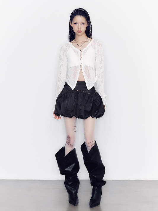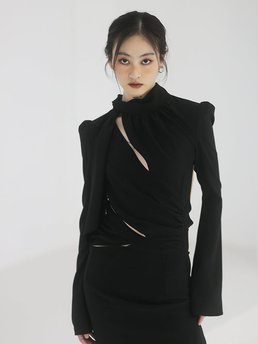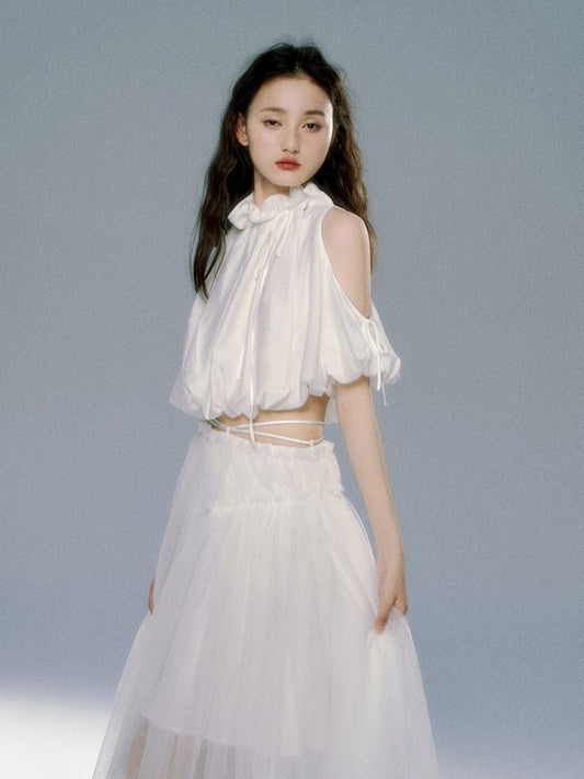 벌룬 오픈 숄더 플레어 니치 블라우스