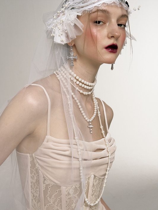 백오픈 섹시 롱 레이스업 비즈 원피스