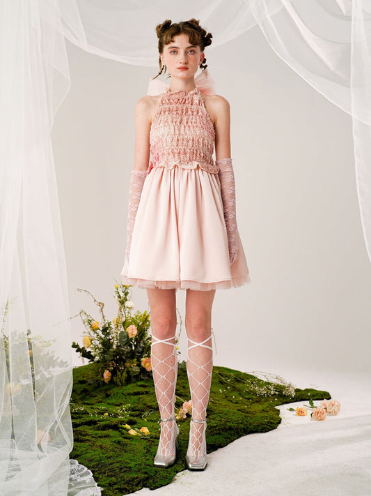 백 오픈 드로스트링 레이어드 니치시크 원피스