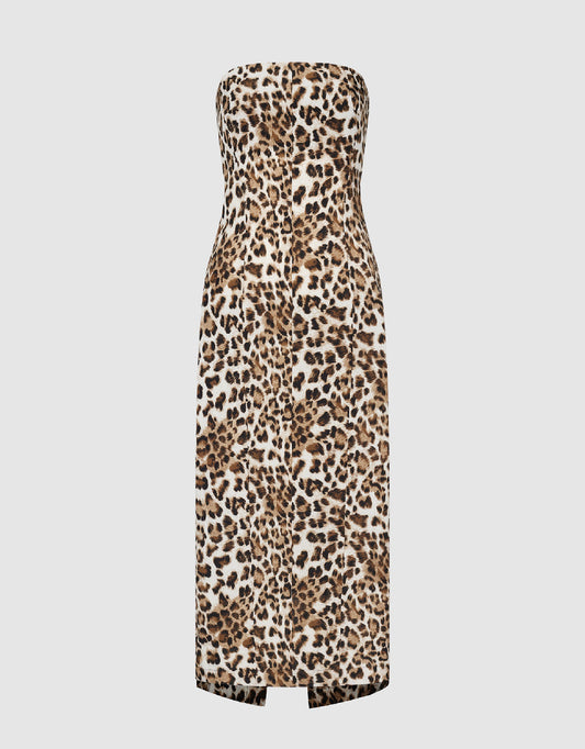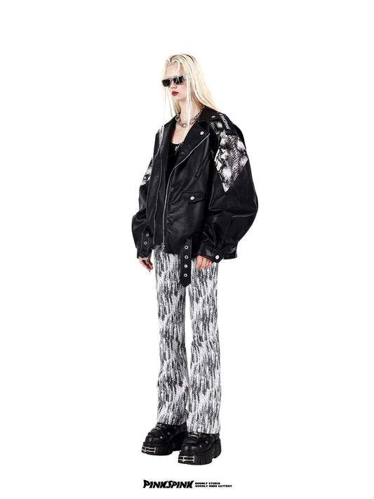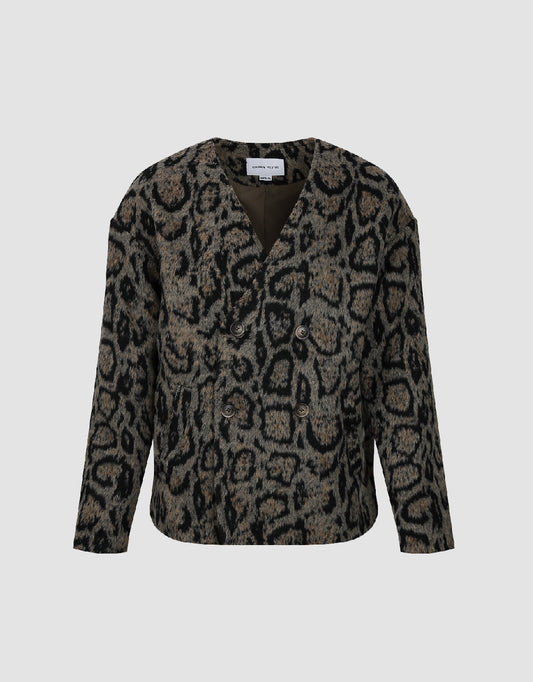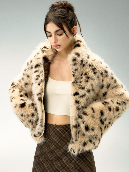 레오파드 프린트 스위칭 중간 길이 퍼 코트