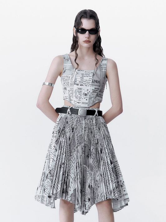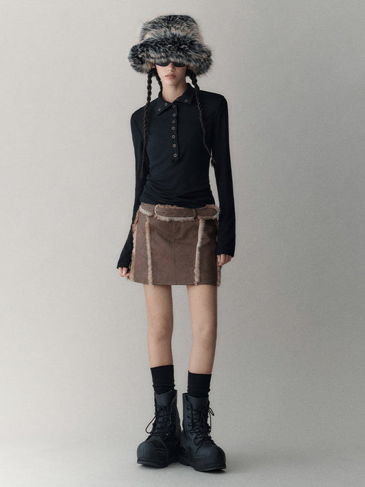 가죽&퍼 쇼트 니치 사다리꼴 미니 스커트