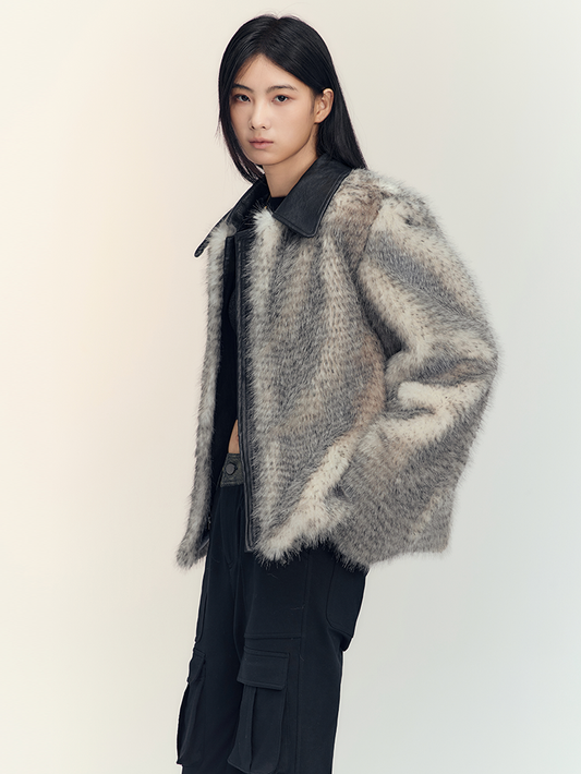 가죽 칼라 럭셔리 따뜻하고 푹신한 보아 재킷